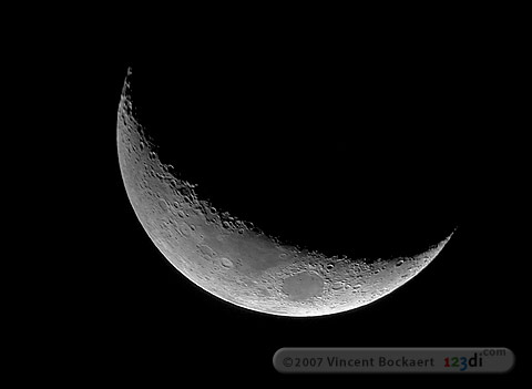 Moon on April 21, 2007 taken with Nikon Coolpix 5000 and Tele Vue 76.